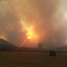 Debido al incendio que inició la tarde de ayer en el Bosque de La Primavera, en la zona conocida como el 18, cerca la Villa Panamericana, se declaró emergencia atmosférica en la zona metropolitana y la suspensión de clases en 78 escuelas del poniente.